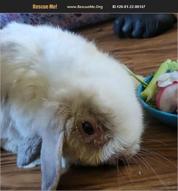 Special needs. Has a tilted head, can get around but needs soft floor space as she rolls on occasion.