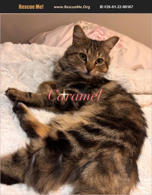 Caramel is as sweet as she sounds and is two years old. She was found on the streets of Newark after having a litter of kittens. Caramel is a beautiful long haired mix. She absolutely loves her head, chin and shoulder pets and will give you nonstop headbutt kisses right away. Caramel loves being near a person, and the moment you touch her, she will melt like my name and purr like an engine. She is happy to become friends with anyone, and she was even working on becoming friends with her foster sister that was a Doberman! She would love to find her forever family, one where she would never need to worry about being cold and hungry ever again.