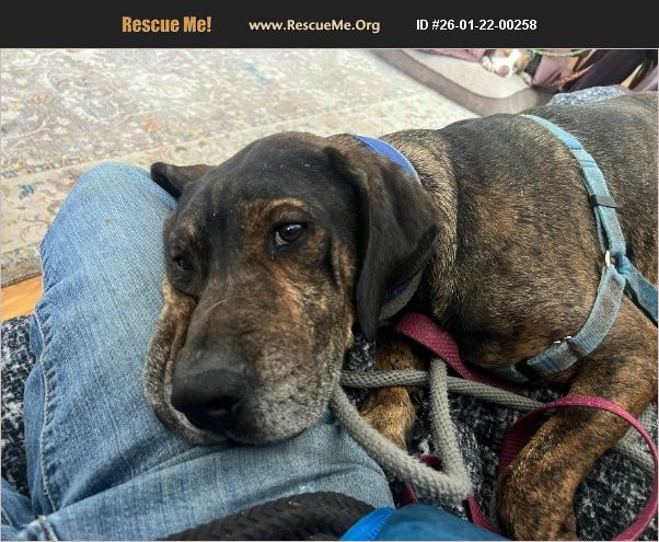 Meet Maddox! This 6-7 year old sweet mixed hound breed guy has eyes that look into his soul. He still has some pep in his step but loves snuggling and napping just as much. He is about 75 pounds of goof ball love who would love to curl up in a bed at your home!!