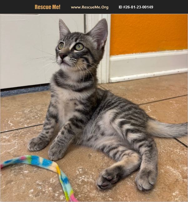 Franky is a sweet fun kitten. He likes all sorts of toys but his favorites are ones he can chase after. Franky is quite vocal and will let you know when he needs attention and playtime. In his foster home he got along with all the other cats, especially his sister Wallee. Come meet this handsome little guy!