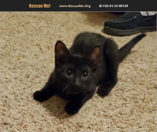 Buster is a male black kitten. He is the most outgoing of his siblings. He's the 1st to explore new surroundings and get love from humans. Buster may have some flying squirrel DNA as his jumps are crazy when you get a wand toy out. He also loves laser pointers & chasing his siblings around. He's learning that a human lap is a great place to settle down for some love. Buster has older cats in his foster home that he's submissive with, they haven't warmed up to him yet. He has not been around dogs but may get along well with a kitty-friendly doggie, if introduced properly. Buster is litter box trained, current on her vaccinations, spayed, microchipped, dewormed and on flea prevention. Apply to adopt here https://www.shelterluv.com/matchme/adopt/PAE/Cat