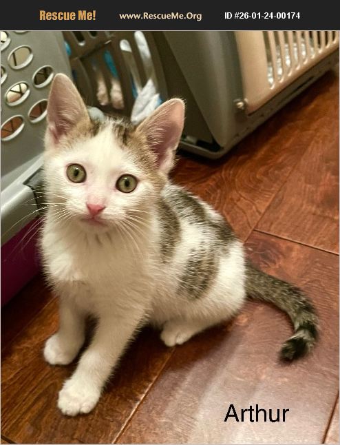 Meet Arthur! Est DOB 11/27/25 Up to date with shots, not neutered (too little and young). DSH male white with tabby patches and tail. Arthur is playful, funny, sweet natured, loves climbing and toys, wrestles well with siblings. Located in AL rescue, can be transported. Apply: [email protected] Adoption fee is $195 Transportation fee is $145 For MA residents only - $130 quarantine fee (State fee) To see other pets for adoption, follow us at Facebook: Pet-a-tet Rescue Group Instagram: @petatetrescue rescue.petatet.org petatet.org