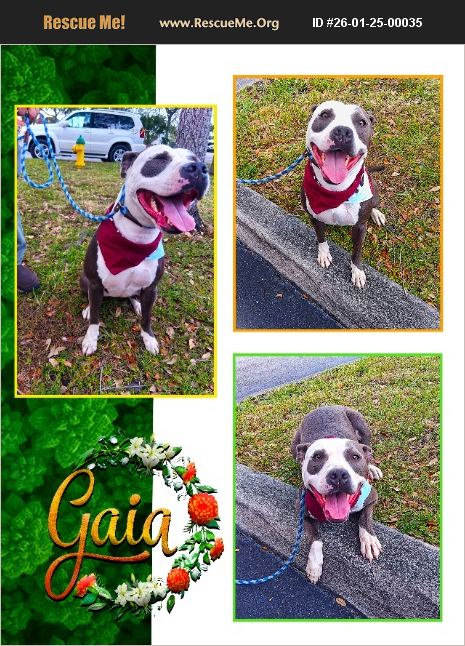 Gaia is a beautiful 1.5-year-old female pittie weighing around 45-50 lbs, and she's ready to finally have a place to call home. This sweet girl is spayed, fully vaccinated, and wonderfully well-mannered. Gaia is house trained, kennel trained, leash trained, and would love to be your copilot on any road trip! She knows her basic commands-sit, down, come, heel, stay, wait, and of course 'no'-and she's very food motivated, making any future training easy breezy! People are Gaia's favorite �%9D%A4��%8F She's very friendly with everyone she meets, including strangers and all the kiddos, and loves to be the center of attention. When it comes to other dogs, Gaia can be selective and does best with male dogs or as an only dog-she's more of a 'quality over quantity' kind of friend. Gaia was surrendered by her previous owner and has spent over a year living in boarding kennels at a veterinary clinic. Despite that, she remains loving, hopeful, and ready for her second chance. She truly deserves a real home, a comfy bed, and someone who will choose her forever. If you're looking for a loyal, affectionate companion who will be endlessly devoted to you, Gaia might just be your perfect match.