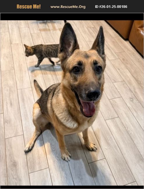 Owner writes�'�|I am rehoming my German Shepherd 2 year old female. Her shots have expired but she is microchipped. She is loyal, loves to play fetch and has a high prey drive, would be best as an only dog or with larger dogs. She likes to fight for alpha position. She is only good with cats that are nice to her, she holds grudges against mean cats. House trained, never been crated. Currently on Diamond High Energy (2 cups) per day. Reason for rehoming: We loss major source of income and are moving to a community that only allows two pets so we have to rehome some. If you are able to help please contact us and we will have owner contact you.