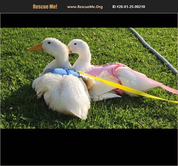 2 Male Pekin Ducks will be 1 yrs old Easter 2026. Would like to keep together they r siblings. They r very friendly. Ground ducks need a cage so other animals can't get to them.