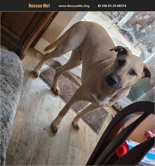 Medium to large dog. Friendly and really a good dog. He needs more room than my small yard provides and my health won't allow me to walk him.