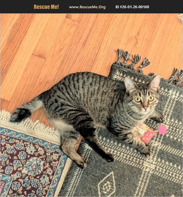 KORRIE is a social, friendly and confident 1-2 yr old petite young lady. She enjoys meeting new people and will be happy to greet your guests. Once she forms a bond with her person, she is quite the cuddler. She enjoys snuggling up and sleeping with her foster mom. She loves being petted, including chin and cheek rubs, forehead scratches and long strokes down her back. She purrs, makes biscuits, and follows your hand with her head to get more. A tabby girl with prominent black stripes, Korrie's distinguishing feature is her unique tail. It folds back on itself in a 'U' shape right near the end, so it looks like she is beckoning to you! She also has luminous green eyes. Korrie is not demanding of attention, and would be fine with someone who is away at work during the day. At times, she likes hanging out with her people and being part of the action. At other times, she is happy to entertain herself by chasing around a toy mouse, or curling up in the sun for a nice nap. When you get home from work, she will be happy to greet you for some playtime and cuddling. Korrie would be happiest as your one and only pet. She gets along with other cats, but likes to be the center of attention. Adoption fee is a minimum $85 per cat donation to Feral Fixers. All cats are up to date on shots, microchipped, dewormed, fixed, and FeLV/FIV negative. Discounted adoption fee if two cats are adopted together, $150 for a pair. Brief screening questionnaire and contract apply! If you are interested in meeting and adopting one of our cats please email: [email protected] Our cats and kittens are in private foster homes and need a completed questionnaire before an appointment can be made to meet them. All of our cats/kittens are in foster homes throughout DuPage County. We consider adopters within a reasonable driving distance.