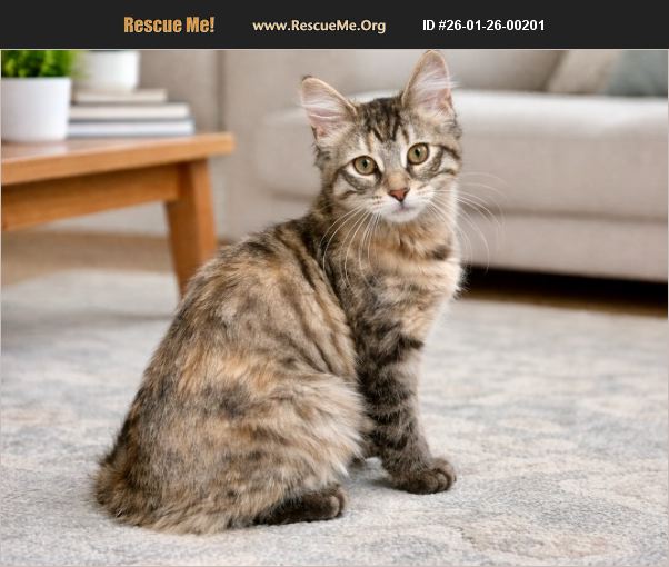 Meet Maisie, a gorgeous medium-haired Maine Coon/Tabby mix with a big personality packed into a four-month-old kitten! She came to our rescue alongside her mom, Millie, after a kind Good Samaritan took Millie in as a stray-only to discover she was expecting. Millie gave birth to five beautiful babies on 9/22/25. While Maisie's siblings have all found homes, this sweet mother-daughter duo is still waiting for their happy ending. Maisie may be a little shy at first, but once she feels safe and secure, her affectionate nature truly shines. She is an active, playful girl with the softest purr and a serious love for being close-she's absolutely a lap and shoulder kitty! Curious and colorful in personality, Maisie keeps herself entertained with toys and loves staying busy. She's also quite the talker and will happily let you know when she needs attention, playtime, or cuddles. Maisie has proven to be friendly with people of all ages and would thrive in a home with another kitty to play and bond with. If you're looking for a sweet, affectionate, and entertaining companion, Maisie may be the purrfect match for you. Her adoption fee is $275 and Maisie is vaccinated, FIV/FELV negative, microchipped, and spayed. If you're interested in this little cutie, please fill out an application at https://form.jotform.com/201805462692153. For questions, email [email protected].