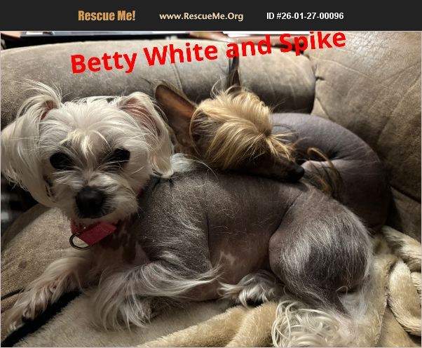 This is a bonded pair of Chinese Crested. Both of these babies are sweet. Betty is a little shy but very sweet. They are used to sleeping in the bed with you. House trained. Both of them are fixed, up to date on vaccines. Current on Heartworm and flea prevention . Microchipped! This is a bonded pair and will only be adopted out together. The adoption fee is $500 for both. Email: [email protected]