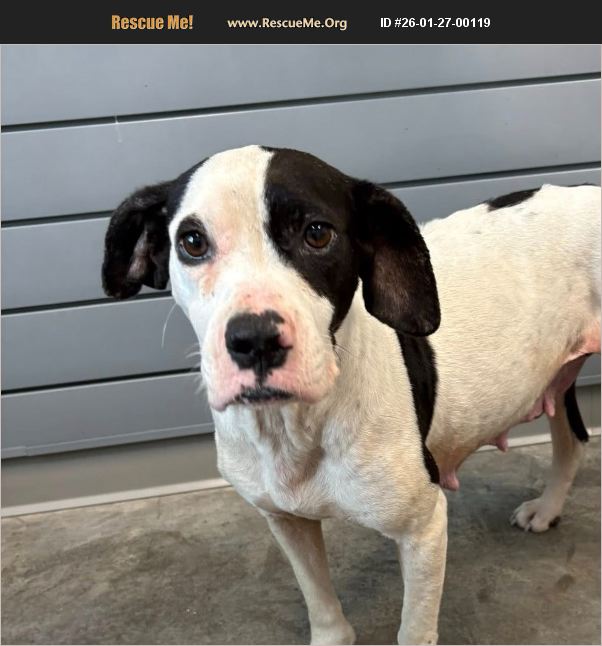 Milk Bone A009709 (in a short term foster home but needs a forever home) 5 yo Female (spayed) White and black Bulldog/beagle Intake date: 1.13.26