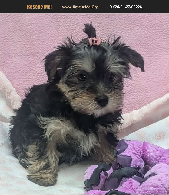 Important Information Please read! If you are interested in me after reading about me, please visit my site, http://www.breederadoptions.org and follow the instructions. The majority of the dogs we rescue, mostly breeder dogs, have lived their entire lives in less-than-ideal conditions so will need to be socialized, house and leash trained. Most have never lived in a house, walked on a leash, had a treat or sat in a lap. For many of them, their feet have never touched the ground after living for years on wire until they arrive at our main facility where they are evaluated, groomed and given vet care. Most of these dogs are not socialized and need to be cornered to be picked up, so are not suitable for people with physical disabilities or suffer from PTSD. They need folks who will make them the center of their world and help them learn to trust before even attempting to train. Please do not apply if you do not meet the requirements of the dogs we rescue. However, they will learn with time, love, patience and most of all, commitment. You must have an ample supply of all of these to reap the rewards of watching these very special dogs become your wonderful companion. We state any known health issues, all are altered unless there is a medical reason not to, which we will advise, any known medical issues addressed, are microchipped, are UTD on all vaccines and have been checked out by at least one veterinarian, usually two. We do not guarantee the health of any of our rescued dogs. The dogs we rescue have lived with other dogs all of their lives and most get along with other dogs. We state if they are dog aggressive. We require a permanent, full-time parent. That means you must be able to spend the majority of your time with your new companion to socialize and train. We do not, under any circumstances, place them in homes with young children as they have not been exposed to children, and we do not know how they will react. Please do not waste your time or ours if you are not prepared to adopt within 2 weeks and you are not willing to pick the dog up at its location. Hi! My name is Juliet, and I am an adorable Morkie baby girl who was born 11/13/25, and I weigh 3 pounds. A small dog to play with in an all-adult home would be ideal. If you have been waiting for a gorgeous baby girl, please ask for me on your application to http://www.breederadoptions.org. Love, Juliet 111325-04