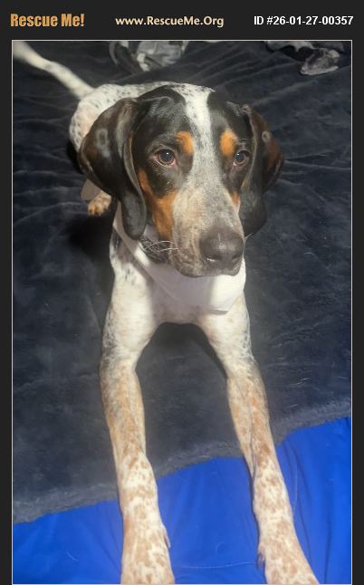 Tex is a bluetick coonhound and is about 2 years old. He is neutered. He is a very loving dog with a lot of energy. With some training he has the potential to be such a good dog. He is great with adults, kids and other dogs. He cannot be around cats or other small animals. This breaks our heart to see him go but we have circumstances that are beyond our control that make us have to find him a forever home.