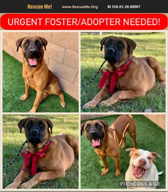 URGENT�'�|HE NEEDS TO BE SAVED ASAP! This sweet, gentle boy doesn't understand why his world fell apart�'�| and it shows in his eyes. He and his furry sister (adopted already without him) looked tired, sad, and confused, as if their family left them behind and they were doing their best just to survive�'�|staying close, staying warm, and keeping each other safe on the streets. Now Dylan is all alone at Moreno Valley Shelter, and time is running out. Meet A548363: Male. Mastiff mix. SO incredibly handsome. Gentle, sweet soul. Takes treats softly and politely. Loves yummy snacks. Rides great in the car. Despite everything he's been through, he is still loving, still kind, still trusting. He deserves warmth, safety, and a family who won't leave him behind again. HELP NEEDED NOW: Jennifer with Pumpkin Pawz Rescue wants to help save him, but we URGENTLY need a foster or adopter. Foster or Rescue contact: Jennifer with Pumpkin Pawz Rescue at (714) 366-8170. Adopt directly from the shelter: Moreno Valley Animal Shelter: 14041 Elsworth St, Moreno Valley, CA 92553. Please share. Please open your heart and home. This sweet boy's life depends on it. PHOTOS & VIDEOS: https://myalbum.com/album/GL4z8GxmiB3knT/