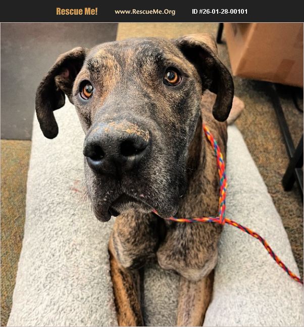 Bruce has been available for adoption since 1/26/2026. Bruce is the sweetest giant boy. He is very food motivated and loves treats. He has a big heart and loves to be next to you. He may be a big guy, but thinks he's a lap dog, and always wants to be touching you. He can be protective over the people he loves. Bruce might take a little longer to warm up to men. Bruce doesn't seem to know any commands at this time and could benefit from some training.