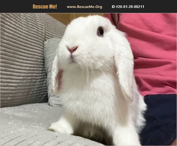 Bluebell is a 2-year-old Holland Lop with a sweet, affectionate, and easygoing personality. She truly loves people and will often hop right over for pets when you enter the room. When you sit on the floor with her, she happily gives kisses and gently nudges you for more attention if you pause the pets. She enjoys digging, free roams most of the day, and is not much of a furniture chewer. Bluebell is generally very laid back but will occasionally surprise you with the cutest little zoomies.