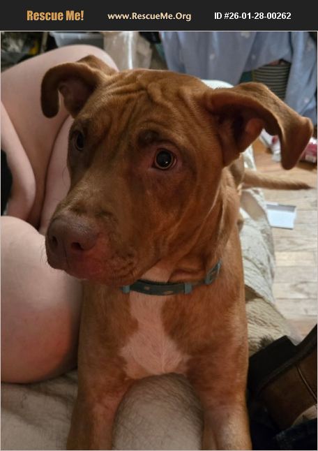 Honey colored with pink nose. Friendly with people but does not get along with our small female dog. Loves to sleep with you, play tug-of-war, and destroying stuffed animals.