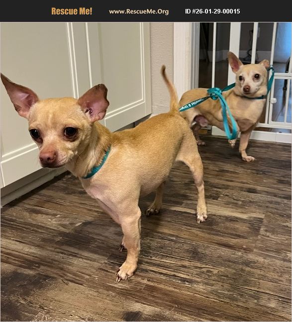 Meet Paco and Poppy! Paco is 8 and Poppy is 12. This bonded pair were dumped because the owner had no more time for them. These two have a very funny relationship. Poppy is very bonded with Paco, who really couldn't care less about Poppy but they have spent their whole lives together. They were terrified at the shelter before we pulled them out of there and now they are much happier. They will bond with you and come to you for love and affection. They are ok with the other dogs and bark at the cat. These two are neutered, fully vaccinated, and microchipped. Adoption fee and contract required.