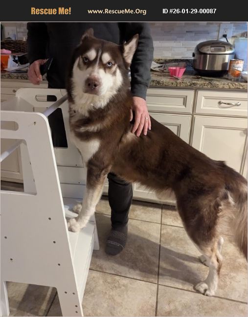 Very sweet young male husky. Knows basic commands like sit, shake, down. Very gentle with kids and adults. Has a lot of energy and needs a home without cats. Is good with other dogs.