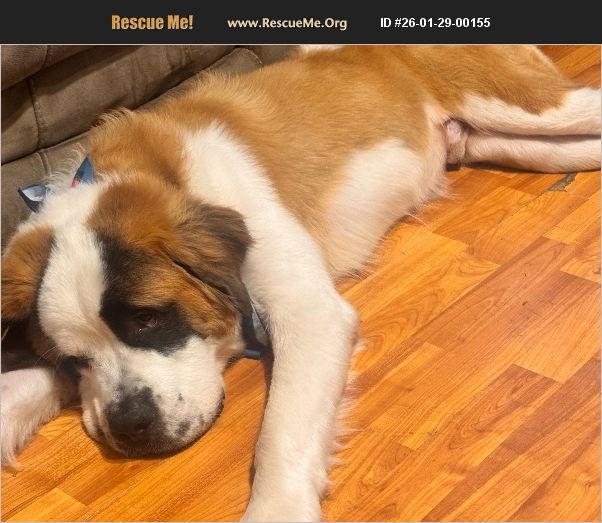 Beanie is a Saint Bernard A very loving dog, he loves to lay upon people. His hobbies are eating playing tug-of-war. He loves to be outside. He's a very fun dog. It's breaking my heart I have to let him go. But he's a lot for me right now. I just want to find a good family home for him.