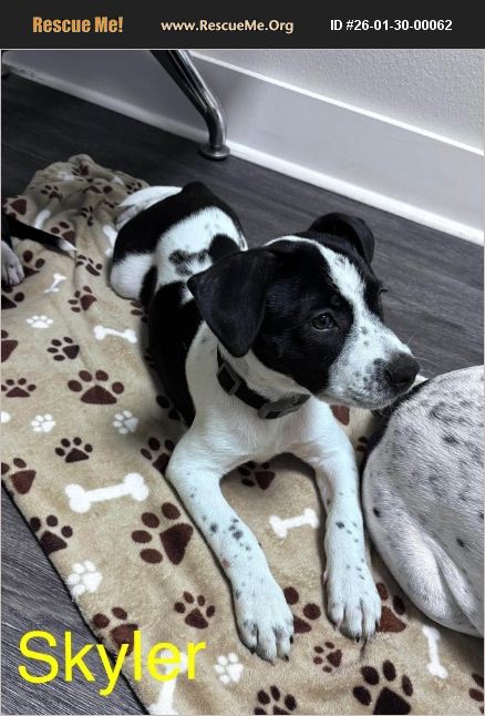 Skyler is an adorable pointer mix. 12 week, 17 lbs. She is spayed. Skyler is the LEADER, fiesty, brave playful and inquisitive. She plays with mamma and sister during the day and is doing very well in her crate at night. Coming to Massachusetts in March. Apply www.sunnypawsrescue.org