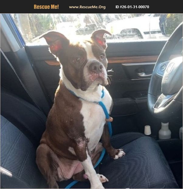 Meet Enzie- 10 year old, female, Boston Terrier PAWS received a call late last week; Enzie and her 80 year old dad were homeless, living in their car. Late last week the car broke down and had to be towed. Her dad went to the hospital and we have Enzie. She is sad, very sweet soul. She is not spayed (unsure if she will be at this point); UTD on all else; walks well on a leash; just needs love and patience. She weighs 30 lbs(she is a little chubby). This is her yesterday in car at her vet appointment. Female Boston Terrier- 10 Years old- 30 lbs; UTD with all; good with dogs; cats unknown