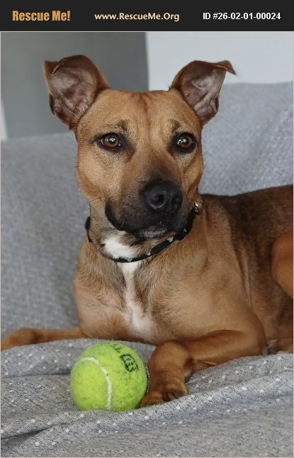 Petite and Agile Addison 'Addie' spent over a year in a scary shelter, overlooked because she was too terrified to show her true self, just cowered in the back of her kennel, frozen on her bed. The staff of the shelter identified her as one of their residents who desperately needed to be OUT of the shelter have a chance at a future. So she came to me. The first few days were heartbreaking - she trembled at the end of a leash, her tail stayed tucked - always, avoided eye contact. But then one day, it happened, that little tail tip wagged, ever so slightly, still tucked, but it was a major step. After that the growth came faster day by day. And with the help of her foster brother, Joe, she is blossoming into a 'real dog!' Addie is surely a mixed breed, but appears may some Feist in her blood. She is athletic, beautiful, sleek, LOVES to chase balls and is incredibly fast. Once the playing is done, she heads straight for her 'special spot' on the sofa to snuggle up and relax. Addie is still getting over her fear, making progress daily. When her guard is down she coyly asks for pets, play fetch and loves to snuggle on her soft bed and blanket with the family. She is very food-motivated, which is making her training a breeze! She is currently working hard on her leash walking skills and potty training, gaining confidence every day. She loves her foster brother, Little Joe, and we believe she would do best in a home with another dog. She appears to be 2-3 years old, she is spayed, up-to-date on all vaccinations and prevention, and heartworm negative. Addie needs a patient family willing to work with her, to continue showing her that the world is a safe place. If you have a tennis ball and a cozy spot on your sofa, Addie might be your perfect match!