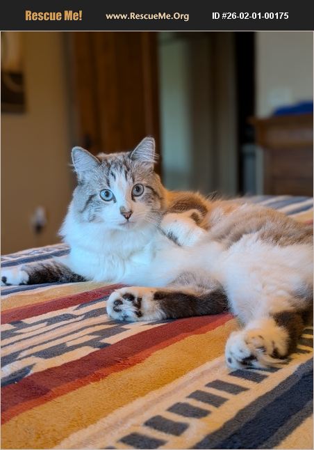 Patty Boa was severely neglected and then abandoned at a busy intersection in Phoenix. Our team was able to rescue Patty Boa in 2025. He showed clear signs of neglect, so it took a few months to get him to trust us. He is scared around new people, but once he gets to know you his true personality shines. Patty Boa is a one year old, male, lynx ragdoll. He is very high energy and would love a family that could play with him. He loves to bunny kick anything he can grab. At times you'll even see him hanging upside down on a cat tower while bunny kicking it. He likes spring toys and jingle balls. He is still scared of any wand toys, but he is slowly starting to show interest in them. Patty Boa likes to be pet and is extremely talkative. He is an expert at the chirp and does it a lot while playing. Patty Boa got his name because he was found on St. Patty's Day at a Bank of America. He is neutered, microchipped, vaccinated, dewormed, has a negative snap test and his blood work is normal. He gets along great with cats and would do best in a home that had another cat that matched his energy level. He would do well with calm children over the age of 10. We aren't sure how he does with dogs.