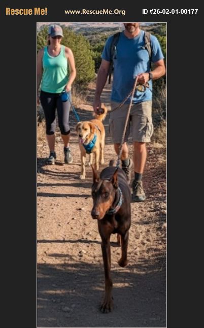 TOBY is a sweet young Doberman with a gentle heart and a resilient spirit. He had a very difficult start to life, losing his human family one by one until he was left alone in an outdoor kennel. Today, Toby is safe, cared for, and learning what it means to be loved again. Because of his past, Toby can be a little anxious around food and water and may drink a full bowl at once - something his future family can easily support with patience and consistency. Despite everything he's been through, Toby still adores being around friendly dogs and has kept his ability to trust people. His favorite things are zooming around the yard with his best doggy friend and then coming inside for a long, peaceful nap. Doberman experience is preferred. As the breed is known for being athletic and clever climbers, Toby's new home will need a secure play yard with a solid block or 8-foot wall. Toby's adoption fee includes his neuter, vaccines, deworming, and microchip. We believe he is about two years old. Toby would thrive in a home in the Santa Fe, Albuquerque, Rio Rancho, White Rock, or Los Alamos area with a stay-at-home person and another friendly dog who enjoys playtime as much as he does. If you think Toby might be a good fit for your family, please email [email protected] to check availability and start the application process. We would love to introduce you - and your dogs - to this beautiful boy and help him find the safe, loving home he deserves.
