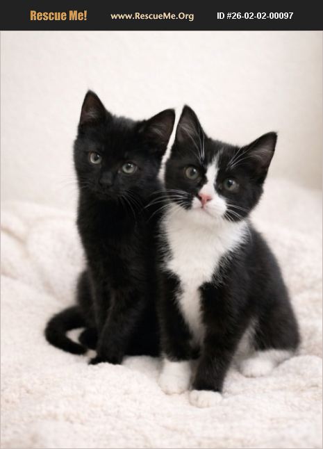 Meet this adorable duo of 9-week-old kittens - Felix and Oscar - double the love, double the fun! These two boys are playful, curious, and clever little explorers, who turn everything into a game. They love chasing toys, pouncing on each other and then curling up together for a cozy nap. This bonded pair are litter box trained and doing great with their manners, making them the perfect addition to the right home. Not only have this pair had their fur mommy's guidance and love, they have been showered with love and support from their human mommy. Felix is solid black and a total lovebug! He adores being cuddled, babied, and held close, and happily melts into your arms for snuggles. Then he is hard at play! He loves to play with his brother, as well as his human. If you're looking for a kitten who wants to be loved, spoiled and funny to watch Felix is your boy. Oscar is a Tuxedo. He is the brains of the operation - clever, playful, and endlessly curious. He's always figuring things out, investigating new toys, and turning everything into a game. When he has mastered the climb, he lets Felix know it's ok to join in. He is very gentle, loves affection and enjoys rubbing noses with his human. He is a sweetheart! Together, Felix and Oscar balance each other perfectly: sweet and snuggly meets smart and playful. If you are looking for kittens who will make you laugh, steal your heart, and grow into affectionate lifelong companions, this bonded pair is ready to meet you! If you are interested in adopting this pair, please reach out to me for an adoption application. There is a $125.00 adoption fee for the pair. They are available for adoption in Houston and surrounding areas. No more than a 3-hour drive from Houston. Since Felix and Oscar are to young to be neutered, a contract must be signed agreeing to neuter them at the proper age. More pictures are available upon request.