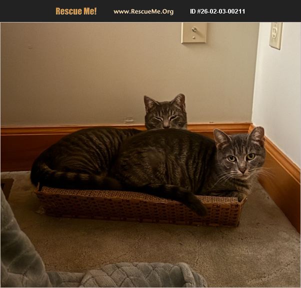 Hi there! This is a posting for both Wolfie (the pup born ~5/25) and his auntie 'Oak Leaf' (born summer of '24) - his litter and her babies went to a rescue group a couple of months ago and thankfully were all adopted. Now these two (both fixed with rabies) are actually bonded and need a loving home. They still enjoy going outside during the day, but for safety in a place where they were not born, I would like to find someone who has a screened porch, cat containment -- basically so they can still 'scratch that itch' but stay safe. They are BOTH very sweet & like to be picked up. Because they are rescues they will be shy at first and will need someone gentle and loving. We must meet to check out 'vibes' :) and I have food, wet too, toys and that bed in the photo they like. They scratch on the cardboard thing - not on the furniture. I cannot keep them here, and really they're ready for Home. They started sleeping under my bed even just last night. It's time. Please message me if you want to find out more/meet them. They're good cats and allow they could suffice outside - I want more for them. (3