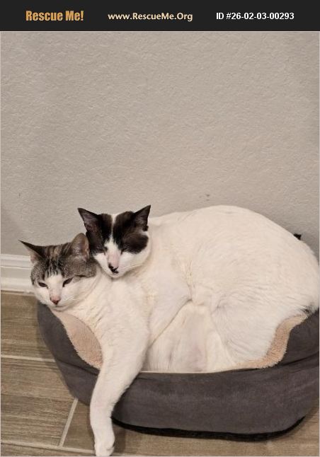 Both are calm, friendly cats who enjoy quiet companionship and lounging near people. Generally independent but affectionate on their own terms. Uses the litter box reliably and does well in a predictable, low-stress home. Not overly vocal. Enjoys window watching and short play sessions.