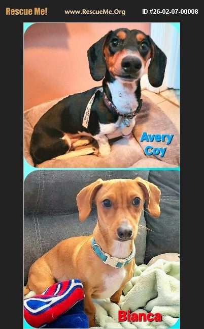 This darling duo met in foster care and are so good together, we'd really like to find them a forever home together!��%BD%A0 Both are one year; Bianca is 15 pounds, Avery Coy 16. Active youngsters, they spend a good part of every day playing with one another, other dogs too. They love to run, do zoomies; and they like snow! We'd like them to have a fenced yard. They're affectionate, cuddly, love being with their humans. Avery Coy is shy at first, needs time to feel comfortable; Bianca is more outgoing. Both are full of doxie personality, great fun and so lovable -- wonderful family members. If you have room and time for two energetic youngsters, reach out. Reach out for more photos. Fostered near Philadelphia, PA. Adoption fee for pair $995. www.longdogsrescue.org/application