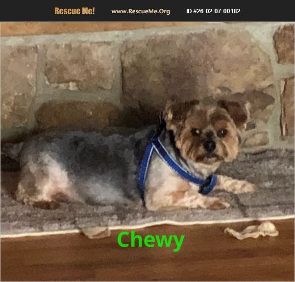 Chewy is a 5 year old male yorkie weighing 19 lbs. He needs a calm adult household with experienced owners who are patient and will give him structure and time he needs to fully trust new people. He's a good boy but has some anxiety and stresses over new people and places. He would be best as an only dog so he would get all the attention. He loves belly rubs and playing with toys and is not a lap dog. He may sneak a kiss in during the day.