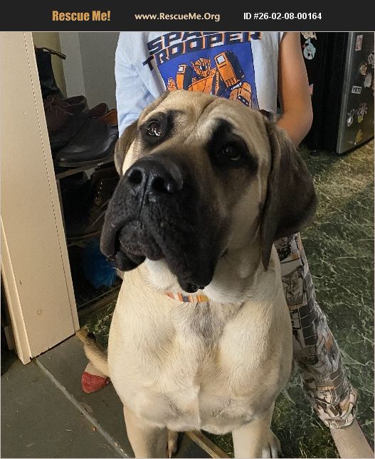 Zora is a 2 year old Mastiff, approx 150lbs, Mostly dry mouth, very little drool that is usually associated with the breed. She plays well with other dogs. Very loving and gentle with family. She is good with adults & children. She is wary of strangers coming into her space and protective of her family.