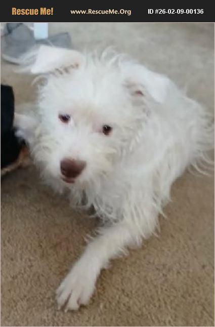 White poodle mix. Gets along great with adults but not sure how she is with kids or smaller animals.