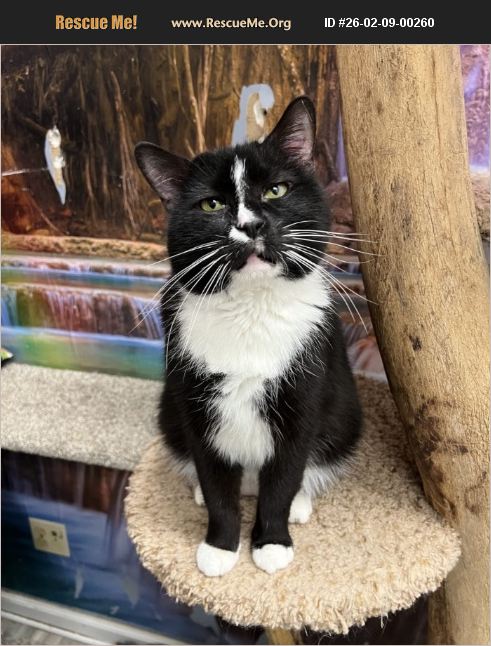 Freedom is an 8-year-old black and white tuxedo cat with the heart and manners of a true gentleman. Composed, poised, and quietly charming, he has an engaging presence that makes you want to sit a little longer and soak up his calm energy. Freedom loves people and enjoys affection, but he also appreciates the simple joys of life, like soft beds, peaceful moments, and being near those who care. He's also good with other cats, making him a wonderful companion for a home with feline friends or as a beloved solo kitty.