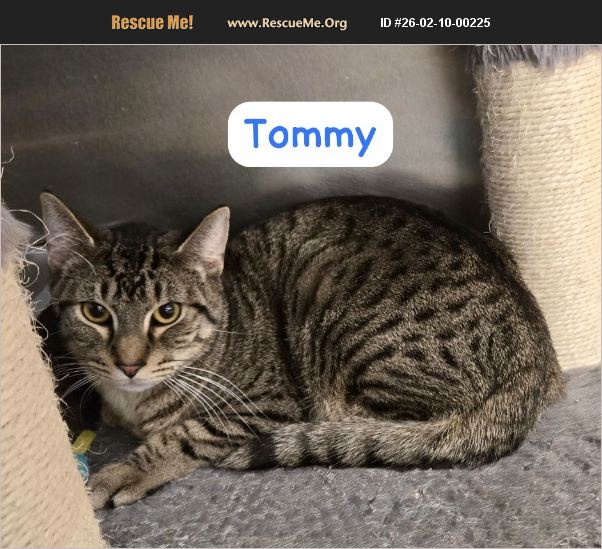 Tommy is an 8-month-old brown tabby with black accents and the most gorgeous amber eyes. He's has a handsome, masculine face softened by the gentlest expression. Tommy is a very chill kitten who loves to be pet and enjoys playtime with his feline friends. Though he may be shy at first, Tommy truly blossoms once he feels safe and comfortable. He's a gentle boy who's still growing into his confidence and would make a wonderful, steady companion. He has so much love to give and would be an excellent buddy for movie nights, especially if cuddling on the couch is involved. Tommy would thrive in a home with another kitty to help him feel secure and loved.
