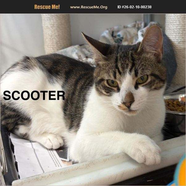 Scooter has arrived! Poor Scooter was living in a home one day and then tossed outside the next. His mom and dad moved and forgot to tell him they were leaving. Afraid and hungry outside, a kind woman came to get him. She got him to the doctor for a check up and fostered him until Rescue Ridge could help. He's now hoping that his forever family is out there. He's just two years young, very playful, loves to head butt and gets along with others.