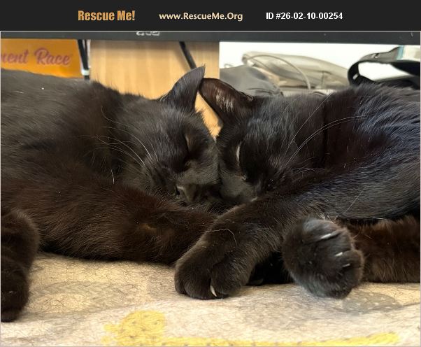 Thor and Loki are brothers that I adopted from a shelter 8 or 9 years ago. We picked friendly, neutered, black male cats that looked like teenagers, so young but not kittens, and therefore less likely to be adopted and had been there for months. We are moving overseas and our friends there are deathly allergic to cats, so I am heart-broken that I cannot keep them. Thor is an energetic, sweet cat who loves to cuddle in a lap or sleep at the top of a cat tree. He is often happy to greet people to see if they will pet him. If you sit still long enough, he sometimes will give cat licks to groom you and tell you you're part of his family. He will wrestle his stuffed taco-shaped cat toy and want you to toss it to him again. Loki is the big brother that is often found sitting like a loaf. He sometimes looks like he has resting grumpy-cat face but is happy for attention and will start purring when petted. Many times he likes to nap within sight of someone so you can keep an eye on each other, and often would sleep beside me for part of the night. Both cats can be picked up, snuggled, and carried to where you want them. They sometimes nap together all snuggled up. They have both been around two different golden retrievers, and grew up with my son who is now not quite a teenager. They like girl cats, but not all boy cats. They are used to coming and going outside with a pet door because we needed to let the dog go out when he needed to. I serve them canned food twice a day, and they eat side-by-side. (Total of 2 cans a day.) They have a dry cat food feeder that they graze on throughout the day without being fat, and a gravity-fed water bowl. They love Temptations treats.