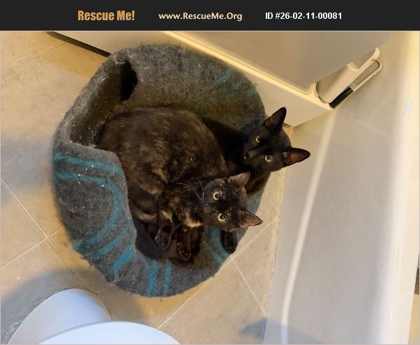 This animal is available to licensed rescue groups only. Please do not enquire unless with a licensed rescue group. Anubis and Bastet are the sweetest kitties, you can see in their video. They do not need to remain together when going to a new home but we would like them to go with another cat b/c they love kitties. These babies are super duper love bugs. 6 months old. love to reach out and touch you. If you are looking for affectionate kitties these babies are the ones. Anubis is M, black. Bastet is F, torti.