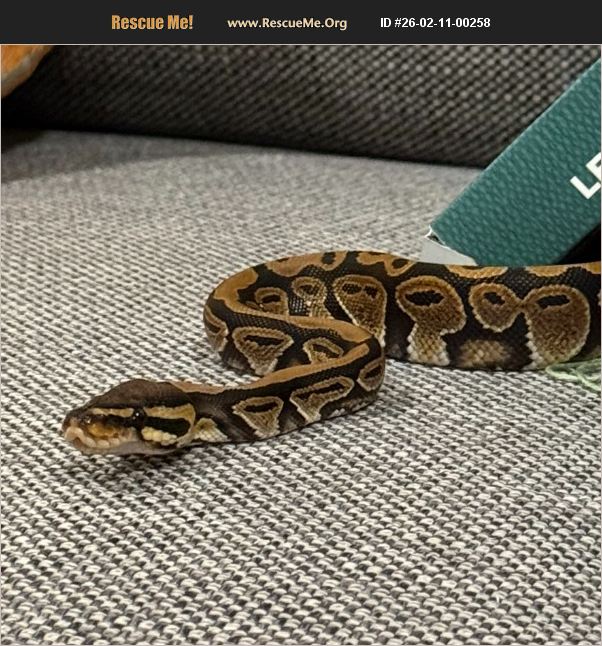 Got in the beginning of September 2025 from Snakes at Sunset where they informed me, he was ~3mo at the time of purchase. I will provide his 30-gallon tank, lights, and heating pad as well as food for 2 months. I am unable to keep caring for him at this time.