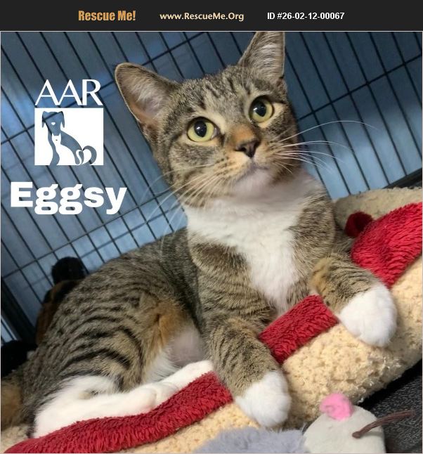 Eggsy was returned to AAR due to a big change in the family that previously adopted her. She likes sitting in a warm lap and would love to be in a new home with people that can give her the time and attention she deserves,