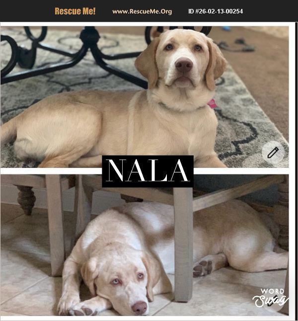 Meet Nala, our gorgeous light-cream Labrador who will be turning 5 years old in December. She has the sweetest eyes and a calm, loving presence - but don't let that fool you�'�| she also has plenty of playful energy! About Nala: �'ۢ Dog & house trained �'ۢ Great with kids �'ۢ Good with other dogs (warms up after a few minutes) �'ۢ Very loving & affectionate �'ۢ Loves to cuddle �'ۢ Active and playful - would thrive with an active family or yard Nala is a loyal companion who loves being close to her people. Whether it's cuddle time on the couch or playtime outside, she's happiest when she's with family.