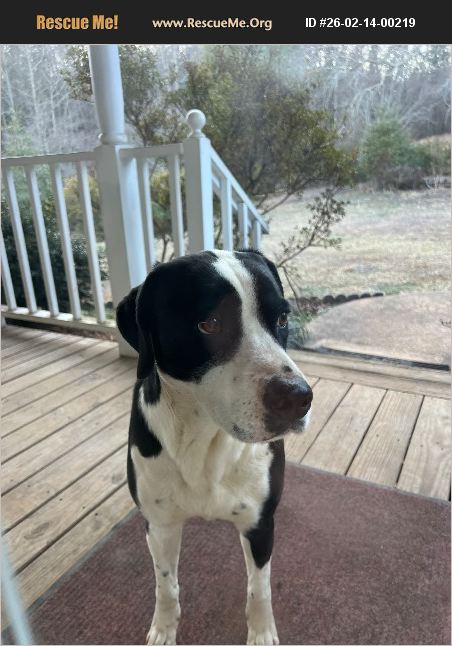 Black and white mixed breed male dog. About 45lbs. Dropped off and has been mostly outside on covered porch. Inside when too cold. Is being fed. Needs a home desperately!