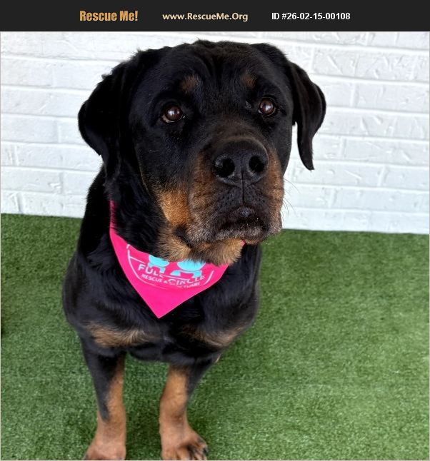 Winnie is a confident and affectionate Rottweiler looking for the right home. She is house trained, great with people, and does very well with kids. She loves attention and enjoys being close to her family. Winnie has a high prey drive and cannot live with small animals, including small dogs. She would do best with dogs her own size when proper structure and introductions are in place, but she may also thrive as the only pet in the home. Consistency, leadership, and clear boundaries will be important for her success. Winnie is currently in professional training and will go to her new home with reliable on leash and off leash obedience. Her future owner should be committed to continuing her training and maintaining structure. She is loyal, loving, and will be an incredible companion in the right home. If you want a devoted shadow with muscles and manners, Winnie is your girl. $400 adoption fee covers spay, vaccinations, parasite prevention and microchip. Apply at www.fullcirclerescueandsanctuary.com