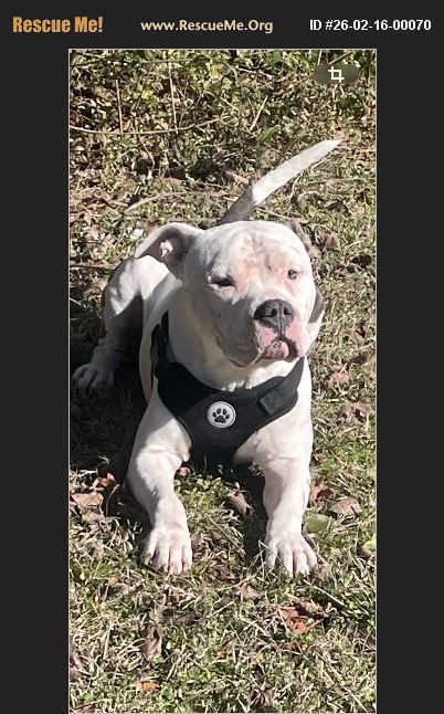 Hank is a different breed of PitBull, his body color is mostly white and he has green eyes. I had been feeding Hank and several others for a year, on the outskirts of the airport, until November 2025, a cold rainy day that Hank was wet and freezing to death. I had been watching and wanting Hank to get in my car for months; he did that freezing day. Hank is a love bug, thinks he's the size of the Chihuahua here. He has not shown any aggressive behavior besides with his food, but only a growl, because he had been starving, since what ever person dropped him off. Please only very serious contacts of interest. I am only doing this because Hank needs a fenced back yard, young and vigorous activity loving people. We have a large backyard, but it's not fenced and the people surrounding us are not pooch friendly at all. And, since Handsome Hank's size is intimidating, that is not a good thing for us. Hank is so lovable, I found that out while feeding them. ONLY the SERIOUS should apply.