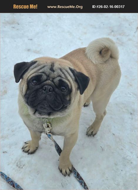 Hello, I am Whinston. My foster mom, Maggie says I am the most handsome pug she has ever seen. I am 3 years old and a real character. I like to snuggle, play, and pretend I'm the boss. Im a well behaved boy and I poop outside. I do sometimes pee inside but this should improve once I am neutered. I get along with cats, dogs and people of all ages. Im looking for a forever home. I need to be kept on leash or in a fenced yard because I don't come when called. Please apply to adopt me at tinypawssmalldogrescue.org. I am located in Mt Pleasant Wi.