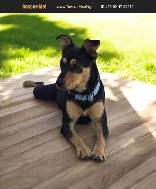Millie was rescued as a stray in Dec 2025. Has been spayed, vaccinated, heart worm checked. Possibly a German Pinscher mix. Very high energy with hunting instincts. Must have room to run and exercise. Loves everyone and is very smart! Approx 18 mo old. Millie will make a great family pet!