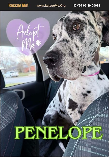 Location: North Richland Hills, TX (Adopter must be within ~2-3 hours of the DFW area) Date of Birth: January 19, 2018 Meet Penelope Penelope is a gentle, affectionate Great Dane who is absolutely convinced she's part human. She's a classic 'Velcro dog' who loves being near her people and happily keeps you company wherever you go. Penelope is sweet, loyal, and wonderfully social. She enjoys meeting guests and will happily hang out by their side like the perfect hostess. She thrives on companionship and prefers going outside when her person joins her. At night, she settles into her big comfy dog bed and sleeps soundly through the night. Knows sit, stay, and shake Gets along with dogs and cats Alerts when she needs to go outside Doesn't get on furniture Penelope is a loyal, loving companion ready to be your shadow. Apply to adopt: https://forms.gle/G2dJx2NV4JXZcZ9F6