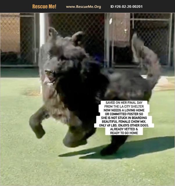 Courtesy Posting: SAVED ON HER FINAL DAY FROM THE LA CITY SHELTER, LEONA NOW NEEDS A LOVING HOME, or committed foster, SO SHE IS NOT STUCK IN BOARDING- beautiful female chow mix, only 49 lbs, enjoys other dogs, already vetted and ready to go home Meet Leona. This dear girl was placed on the euthanasia list due to needing medical at the time. Leona was found as a stray in horribly neglected condition, missing much of her fur, and brought to the LA City shelter beginning of November. She has been estimated to be between 3-5 years old, weighs 49 lbs, and was previously spayed. On Leona's final day, an out of state chow rescue stepped up to save her seeing her potential in videos the shelter provided. Since then, the rescue has provided extensive vetting and treated her skin condition. Her beautiful fur is already filling in, and will soon be stunning! Leona is a very lovely, shy girl that likes keeping to herself like many chows, but is socially tolerant, takes corrections without a problem, and has a gentle and dainty playstyle. She greets people she trust with a tail wag. In the play yard with other dogs recently with a trainer, she can be seen happily running around in video we have. She was described by this trainer as: 'Overall calm temperament, Sweet, gentle, and shy girl. Also: ��%BD'� Dog-friendly with both large and small dogs ��%BD'� Good with people; shy at first and benefits from slow introductions ��%BD'� Does not engage much in play; prefers to keep to herself and sniff ��%BD'� Comfortable with touch and handling ��%BD'� Nervous around loud noises ��%BD'� Does great on leash ��%BD'� Handles small or enclosed spaces well (crate trained) ��%BD'� Once comfortable, very affectionate ��%BD'� Enjoys jumping into arms, cuddling, and receiving pets' Additionally, after thorough Vet exam, and tests, Leona was found to have dry eye issues and a condition called Keratoconjunctivitis, which is inadequate tear production, causing redness, and pain if untreated. Therefore, Leona will need eye ointments or drops administered daily and continuously. The rescue can provide this to fosters, and initially to adopters. We are now looking for a loving home or foster to get her out of boarding, and the home she truly deserves. A 'Meet & Greet' at the Boarding facility in Santa Paula can be arranged through the rescue, ADR.org, by appointment. The trainer and caretaker may be present as well. If you think Leona would be a good friend and pet for you, or to foster, please reach out via email to: [email protected] for questions. An application will need to be completed and returned to meeting her. You may also contact [email protected] asap or Southern California Chow Chow Rescue Network who is local and assisting the rescue with Leona. We will be posting additional videos and pictures of Leona on facebook at: https://www.facebook.com/783968124/posts/10168542881083125/?mibextid=wwXIfr Note: to view contents of link you will need to copy and paste it into your browser.